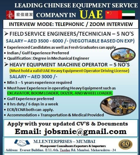UAE |Technical Jobs | MI Enterprises Naukri Videsh August 18, 2025 Technical, UAE 0 Comments Share this post Facebook LinkedIn Pinterest Post navigation Previous PostGulf UAE DubaiNext PostSaudi Arabia jobs | Trailer Driver Leave a Comment Cancel reply Your Name Your Email Save my name, email, and website in this browser for the next time I comment. Your Comment Recent News Articles Fresh job related news content posted each day. August 25, 2025 Electrician 0 Comments Qatar | Electrical Technician Qatar | Electrical Technician Read More August 9, 2025 Dubai 0 Comments Gulf UAE Dubai Read More August 9, 2025 Abudhabi 0 Comments Gulf UAE Abudhabi Read More