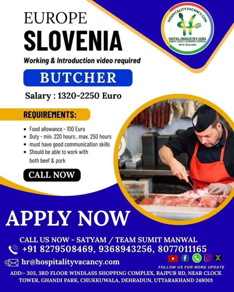 Europe | Slovenia | Butcher Jobs | Hospitality Vacancy